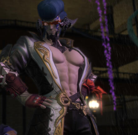 When it was all over, and the ship was ready for takeoff, a linkpearl message from the Rose Knights informed Celestiae that it was too late: Allemaud’s trial had been deemed unnecessary and he had been summarily executed less than an hour prior.With his brother dead just as his dream had been accomplished, Velletinoix flew into a rage and instead turned the ship away from Ishgard in pursuit of Ptolemy, single-mindedly focused on vengeance. This warpath drove the Argentaevis deep into Garlean airspace, where the ship’s advanced Allagan weaponry and shielding proved more than enough to engage smaller imperial warships, and its impressive mobility sufficient to evade the ones so large that it could not. In truth, this came as a surprise to Velletinoix: in his fury, he never believed he would emerge from this attack alive, and had only hoped to exact vengeance on Ptolemy in this final blaze of glory. But the attacks continued to be met with success, going deeper into Garlean territory for daring assaults in the sea, sky, and land. After a fleet of Lominsan pirates witnessed the destruction of a ceruleum tanker and the ships guarding it, the Pirate Powers began to take notice of them. Initially, they were known in Limsa at the “Silver Bird Sky pirates” for the ship’s shining silver hull and avian wing design, but to most they were considered nothing but a high seas myth.It wasn’t until the Argentaevis had finally met its match that it was forced to make its presence officially known in Eorzea. The ship’s shields were broken, its hull damaged, and its bridge boarded by soldiers and warmachina. While the Argentaevis escaped the attack in one piece and the boarding party destroyed, Celestiae Silverwing was badly wounded in the process, shot by magitek artillery that demolished her shield and armor. Needing a place to repair the ship and desperate for medical treatment for Celestiae, they landed on the coast of Vylbrand, where they were surprised to be met in ceremonious welcome by the many privateering ships that had been rescued by the Argentaevis’ attacks. Upon meeting with Velletinoix Silverwing, the “Silver Bird” moniker was changed to his name instead.When he met with the pirate powers, Velletinoix was shocked to recognize Carvallain as the Durendaire heir whom he had briefly known in the earliest years of their schooling by High House tutors. That Velletinoix knew the truth of the Captain’s identity remained unsaid between them, but they became fast friends and allies. Through this connection, the Argentaevis was given official status as a Lominsan privateer, free to make its assaults exclusively upon Imperial vessels, leaving its mission unchanged but now sanctioned.Sadly, the most urgent nature of their reason for making port ended in tragedy: three days after their arrival, in spite of intervention by skilled conjurers and chiurgeons, Celestiae Silverwing succumbed to her wounds and died, leaving Velletinoix the last in his line. In addition to the grief felt by the Captain and his crew, they also found themselves lacking in their strongest fighter. Cognizant of his sister’s death being a result of being inexperienced in doing battle with Garlean warmachina, Velletinoix asked Carvallain to provide him with one of his best fighters against magitek armor to supplement the ship before it left. From this he recommended Djaal Au’Zjaariel, well noted for his blade’s uncanny ability to smash apart Imperial armor, who joined the crew on a temporary basis. Not long after their first mission together, Velletinoix and Djaal had a few trysts and quickly became lovers. When the agreed time for Djaal to return to the Kraken’s Arms arrived, he had long since decided to remain onboard.Over the next two years the Silverwings had many pitched battles and grand adventures in the midst of their attacks on Garlemald, including a variety of missions into Allagan ruins. It was a life filled with death and danger, but one that all of the crew had come to embrace, with new faces joining the ship, with a few of note who remained: the freed Garlean conscript pilot Cwinblyss, the septuagenarian but seemingly invincible Bozjan gunbreaker Srdjan Ljubicasta, and Djaal’s old comrade, the exiled mercenary Hingan swordsman Hiroyuki Souen. They were a ragtag group that was seemingly bound only by a shared hatred of the Garlean Empire and trust in one another. Djaal and Velletinoix grew ever closer over these trials and they began to realize their feelings went well beyond the physical.But it didn’t take long for the Empire to take note, and a plan to eliminate the bothersome attacks by the Argentaevis was hatched. Ptolemy lux Nasso, intent on retrieving the ship, joined with the First Legion’s elite Caelum Custodes aerial unit in a coordinated assault, surrounding them when they flew into a trap. Having bought off Hiroyuki to betray his comrades weeks prior, he killed two of them before dropping the Argentaevis’ shields, letting Ptolemy and a formidable armored contingent come onboard. In the interest of bringing back the ship in one piece, the Caelum Custodes held their fire during the boarding, but were under active orders to shoot it down if the boarding did not succeed.While Djaal engaged in a fierce duel with the traitor Hiroyuki, the other crewmembers engaged Ptolemy’s force and tried to give Lierrelle time to drop the shields. They were victorious at great cost, with only Djaal, Lierrelle, Velletinoix, and Srdjan surviving, Then came the prepared salvo by the Caelum Custodes, which badly damaged a number of critical systems before the shields could be restored long enough to make an escape.The Argentaevis came out in a tailspin and ultimately crash-landed in the Sagolii desert. In the ship’s wreckage, Djaal found Velletinoix’s corpse right by his side, his Allagan planisphere still active over their bodies in a sign that in his last moments he might have saved his lover 